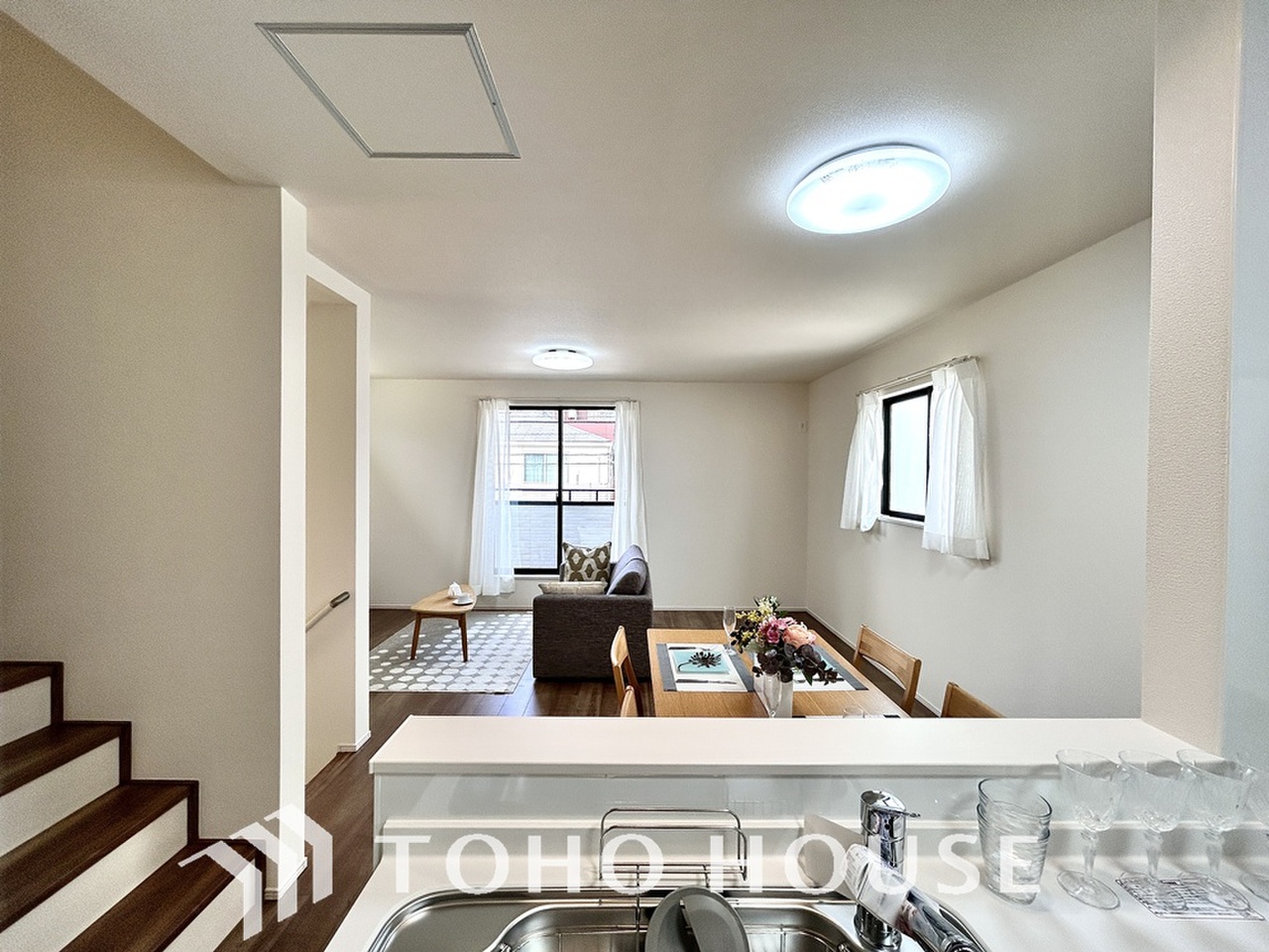 リビングも広く設け、訪れる人々を暖かく迎えてくれます。