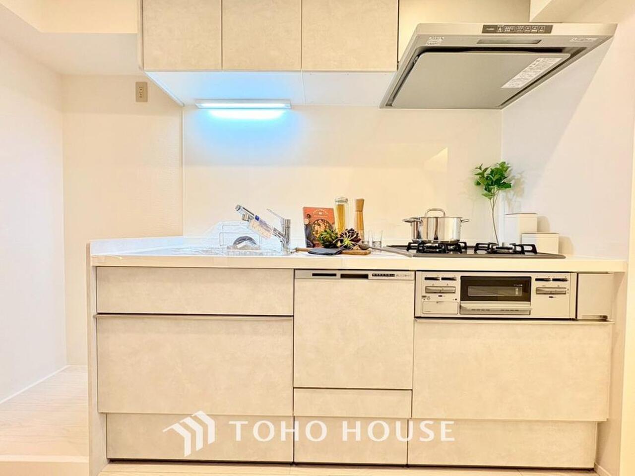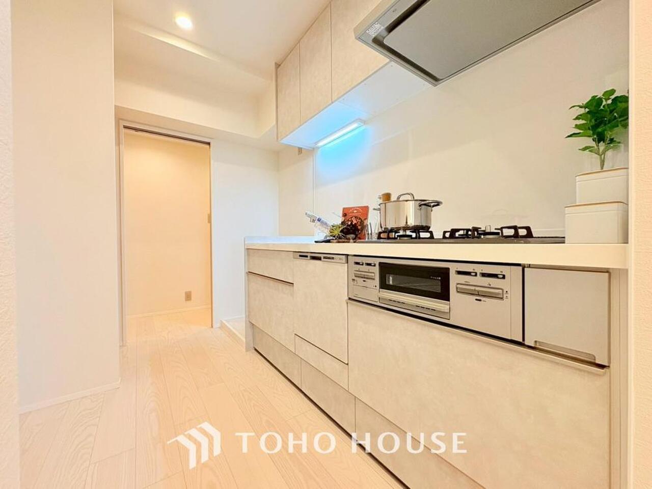 夫婦そろってキッチンに立っても調理がしやすく余裕の広さ。家事をしながら会話も弾みます。