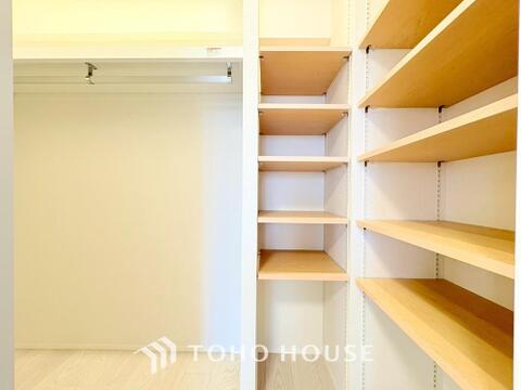 忙しい共働き世帯など、食品の買い置きや日用品のストックに大変便利なパントリー収納が備わってます。