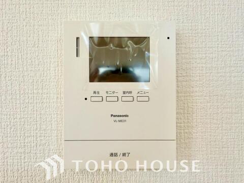 誰が来てもわかる様にモニター付きインターホンを設置。家事導線を考慮した個所に設置し、防犯性と利便性に優れ快適と安らぎを合わせた優しい設計。