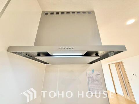 「レンジフード」見た目すっきりのスリムタイプのレンジフードが最近の流行りです。そのスタイリッシュな見た目からインテリアの一部としてもデザイン性が重視されています。掃除のし易さも◎。