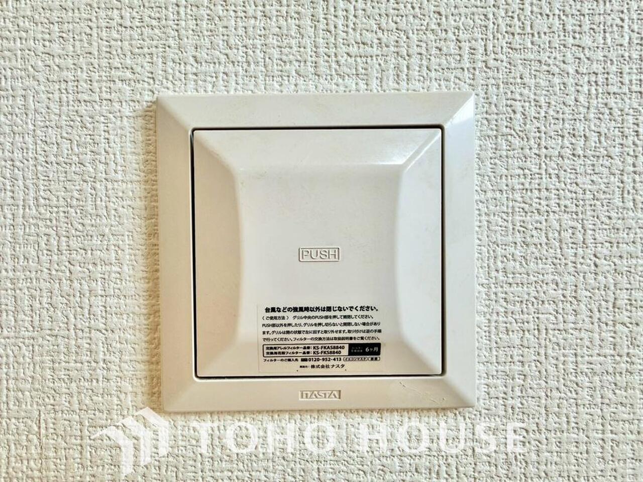 「24時間換気システム」従来の自然換気とは異なり、強制的に室内の空気の入れ替えを自動的に行う事を可能とした「換気設備」です。シックハウス症候群対策としても重要な設備です。