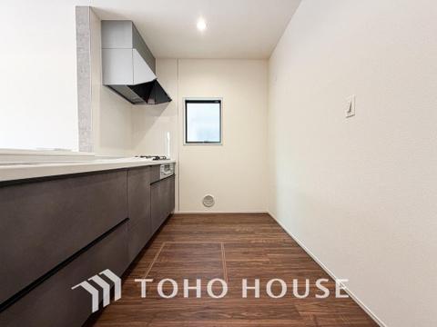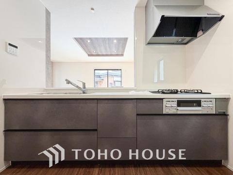 キッチンは、リビングで寛ぐ家族や小さなお子様を見守りながら料理が出来る対面式の温もり設計。