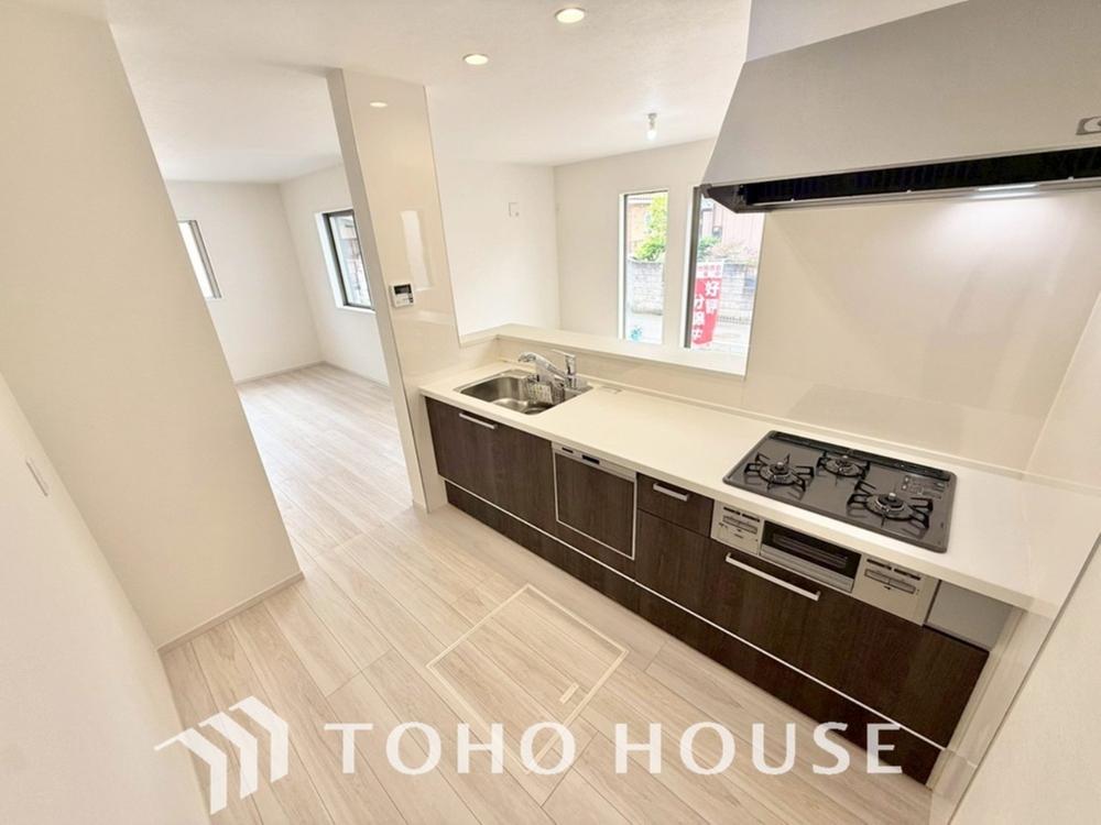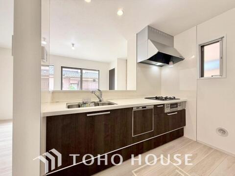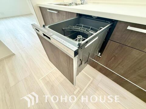 ビルトイン食器洗浄乾燥機付きのシステムキッチン。毎日の家事負担を軽減する嬉しい設備です。