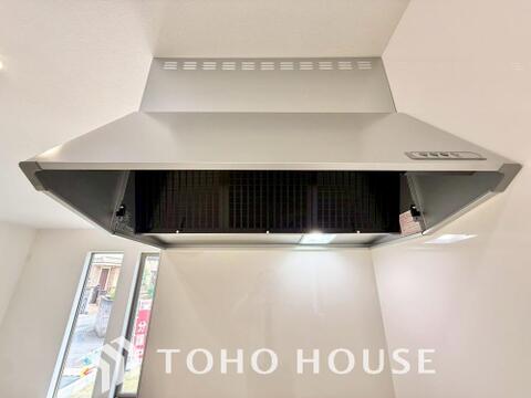 昨今主流のスリムタイプのレンジフード。スタイリッシュな見た目からインテリアとしても人気がある型です。