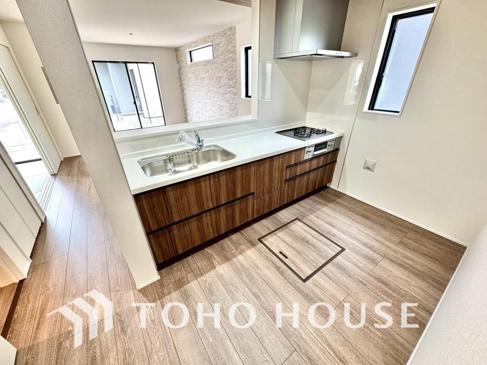 大型の冷蔵庫も配置できる広々としたキッチンスペースでお料理や家事をスムーズに進めることができます。