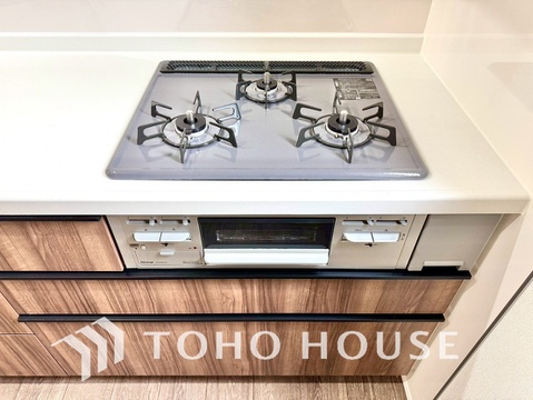 3口コンロは一度に複数のお料理を作ることができるメリットがあります。毎日のキッチンタイムを効率よく。
