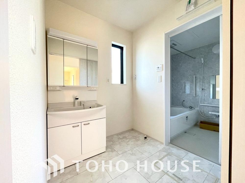 お家の中でも特にプライベートスペースとなる洗面所は、洗濯場所と浴室を同じ空間でまとめております。