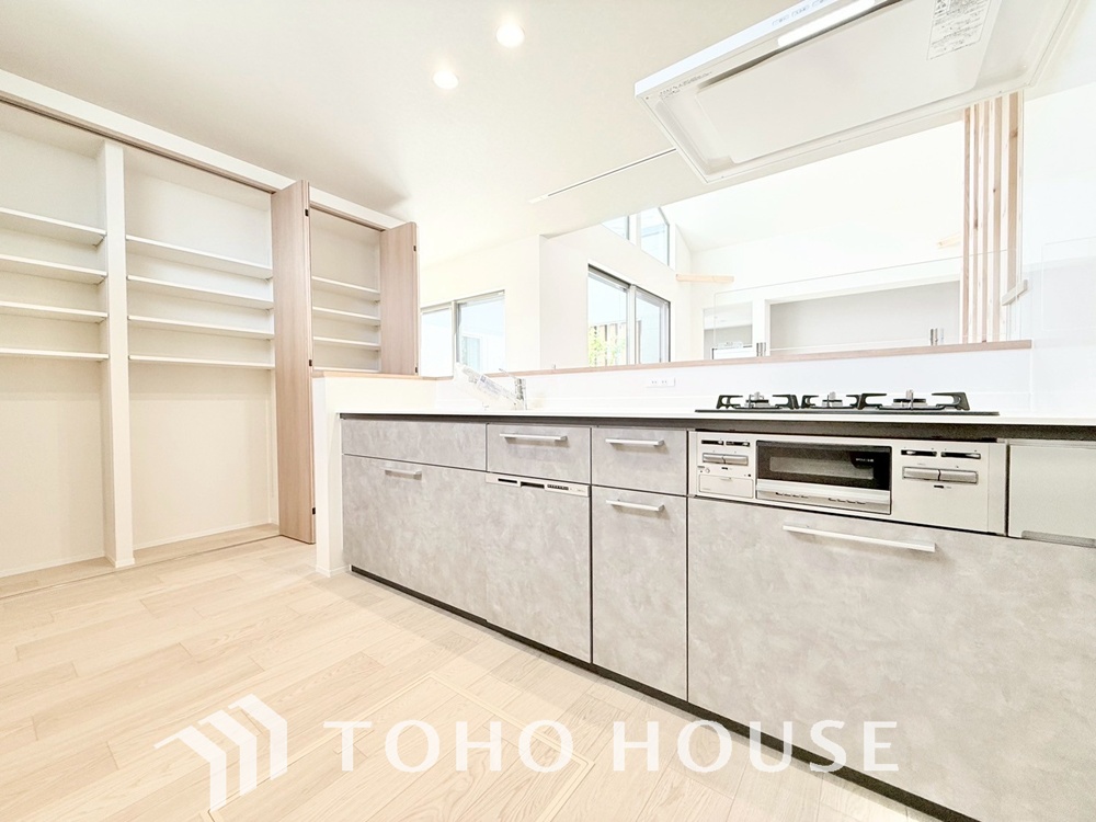 家族みんなでゆったりと調理や食事の準備ができる十分な広さを確保した、快適なキッチンスペース。