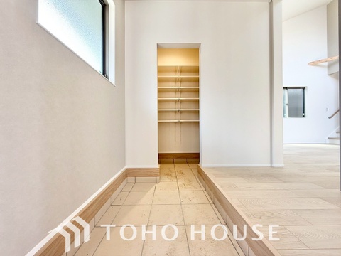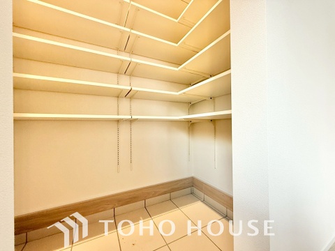 キッチン横にはパントリーを完備。ついつい買いすぎてしまった日用品や食料品のストックなどに。