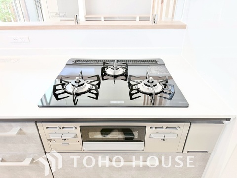 3口コンロは一度に複数のお料理を作ることができるメリットがあります。毎日のキッチンタイムを効率よく。