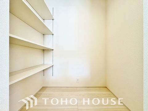 買い置きした日用品や食品等を収納する場所として最適なパントリー収納がございます。