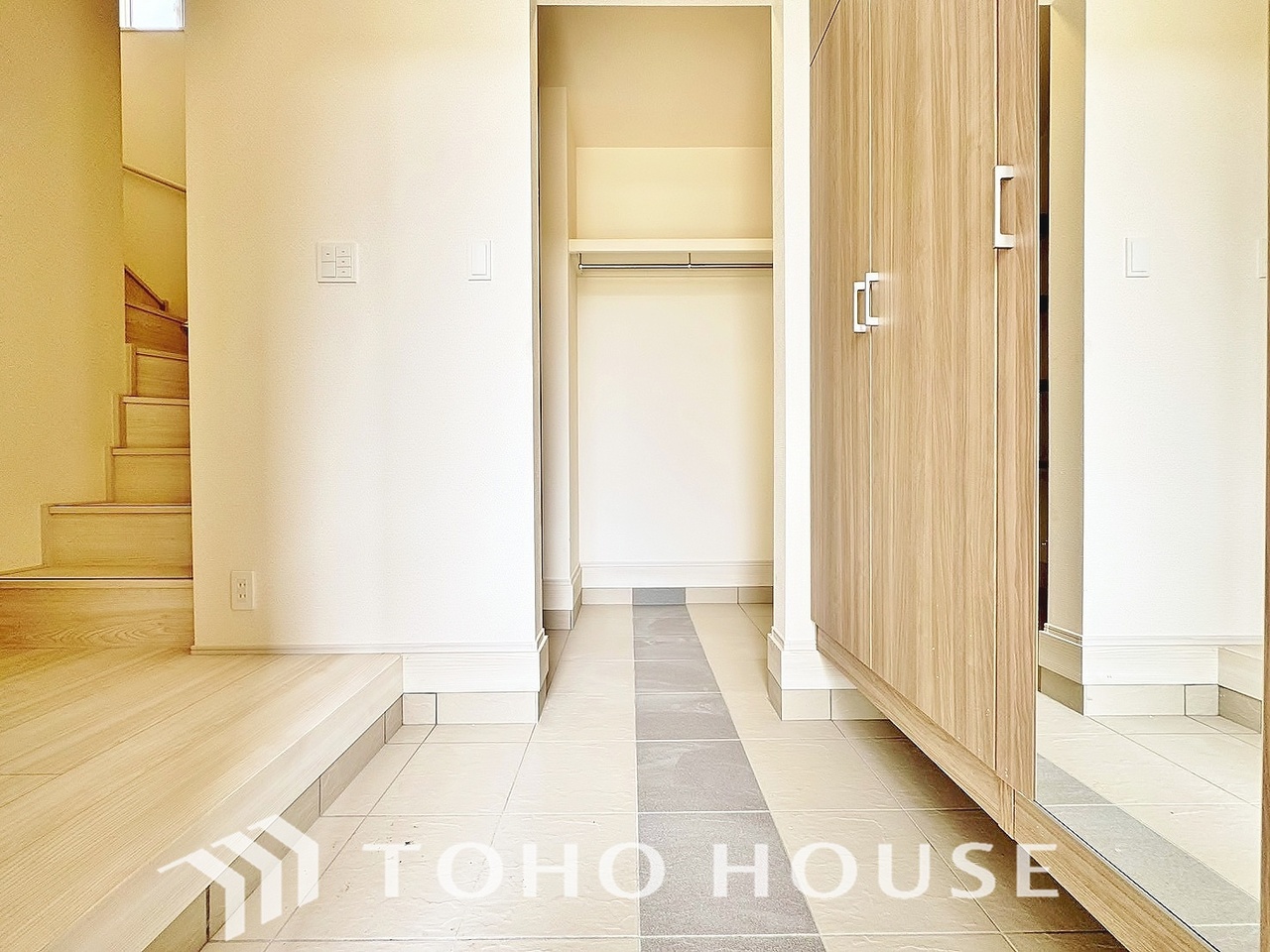 人を迎え入れる最初の場所だからこそ、清潔感が大事。ゆとりあるシューズインクロークも設置しました。