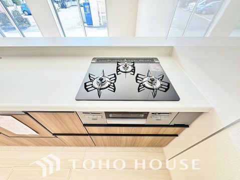 3口コンロは一度に複数のお料理を作ることができるメリットがあります。毎日のキッチンタイムを効率よく。
