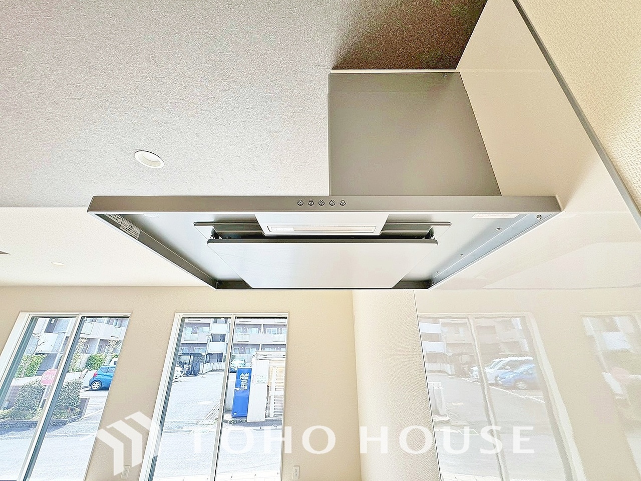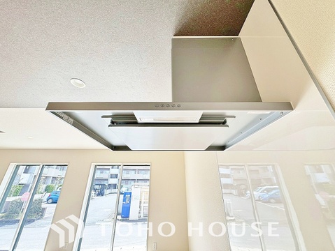 昨今主流のスリムタイプのレンジフード。スタイリッシュな見た目からインテリアとしても人気がある型です。