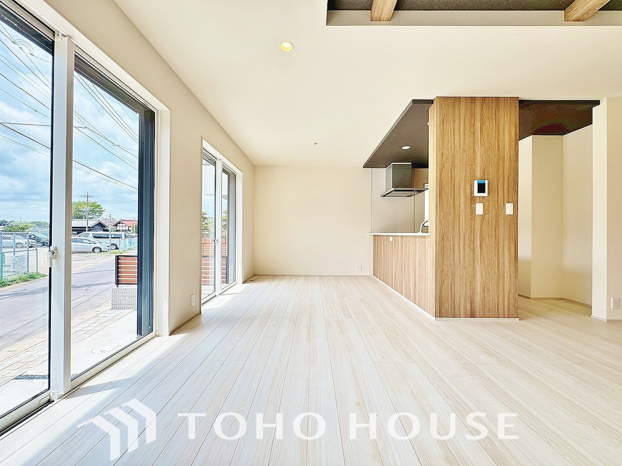 広いLDKでは家族が集まり一緒の時間を過ごせる工夫がされております。
