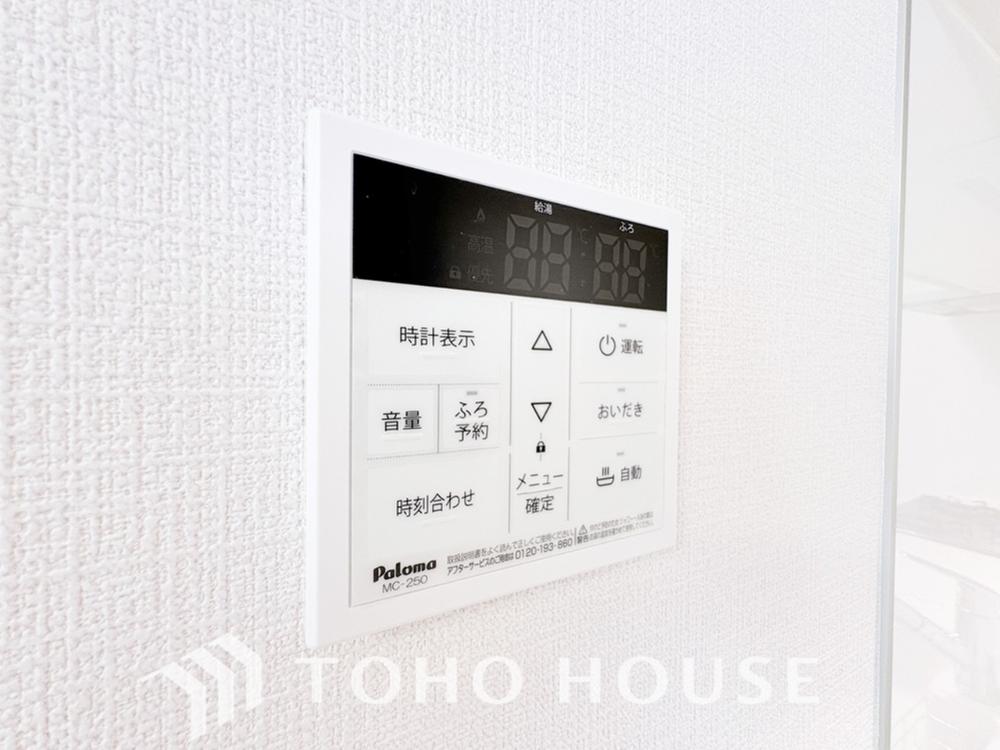 お風呂場と台所に操作リモコンがあり、キッチン近くにある給湯リモコンは、お料理の最中でもリビングで寛いでいるなかでもボタン一つで簡単に沸かせて便利ですね。