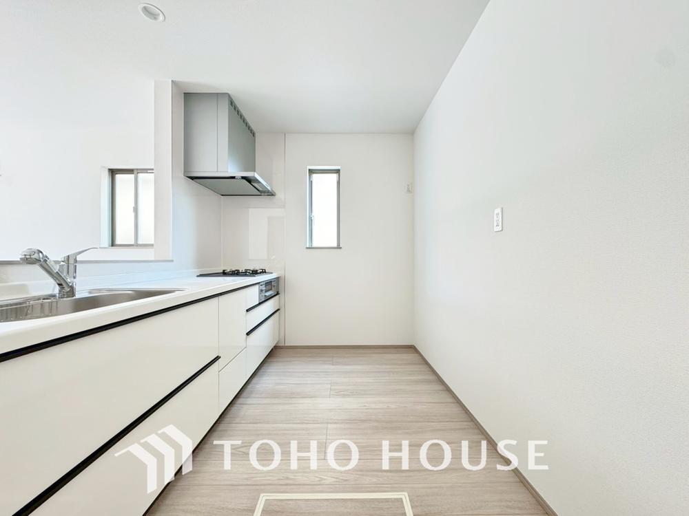 キッチンの収納は、デッドスペースになりやすい箇所を有効活用できる、スライド式収納を採用しました。