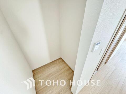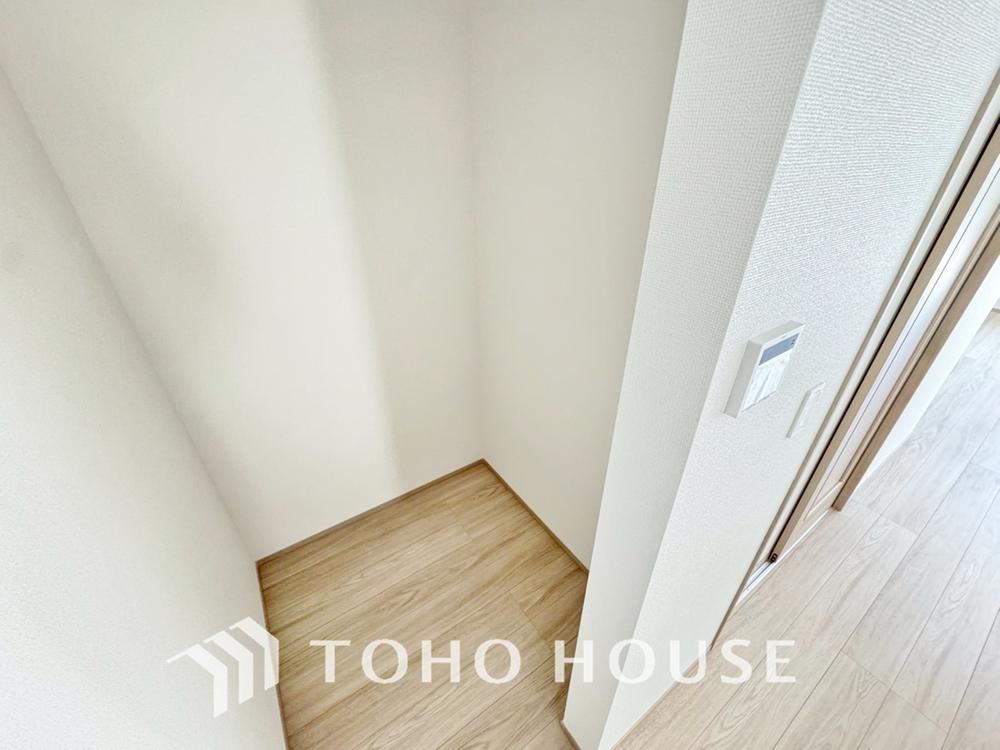 建物内部の収納には拘りました。共有部分に設けた収納。お荷物が多い方にも安心です。