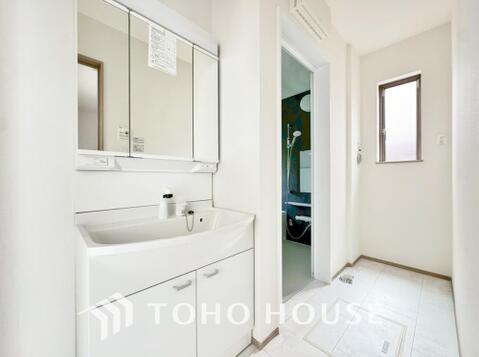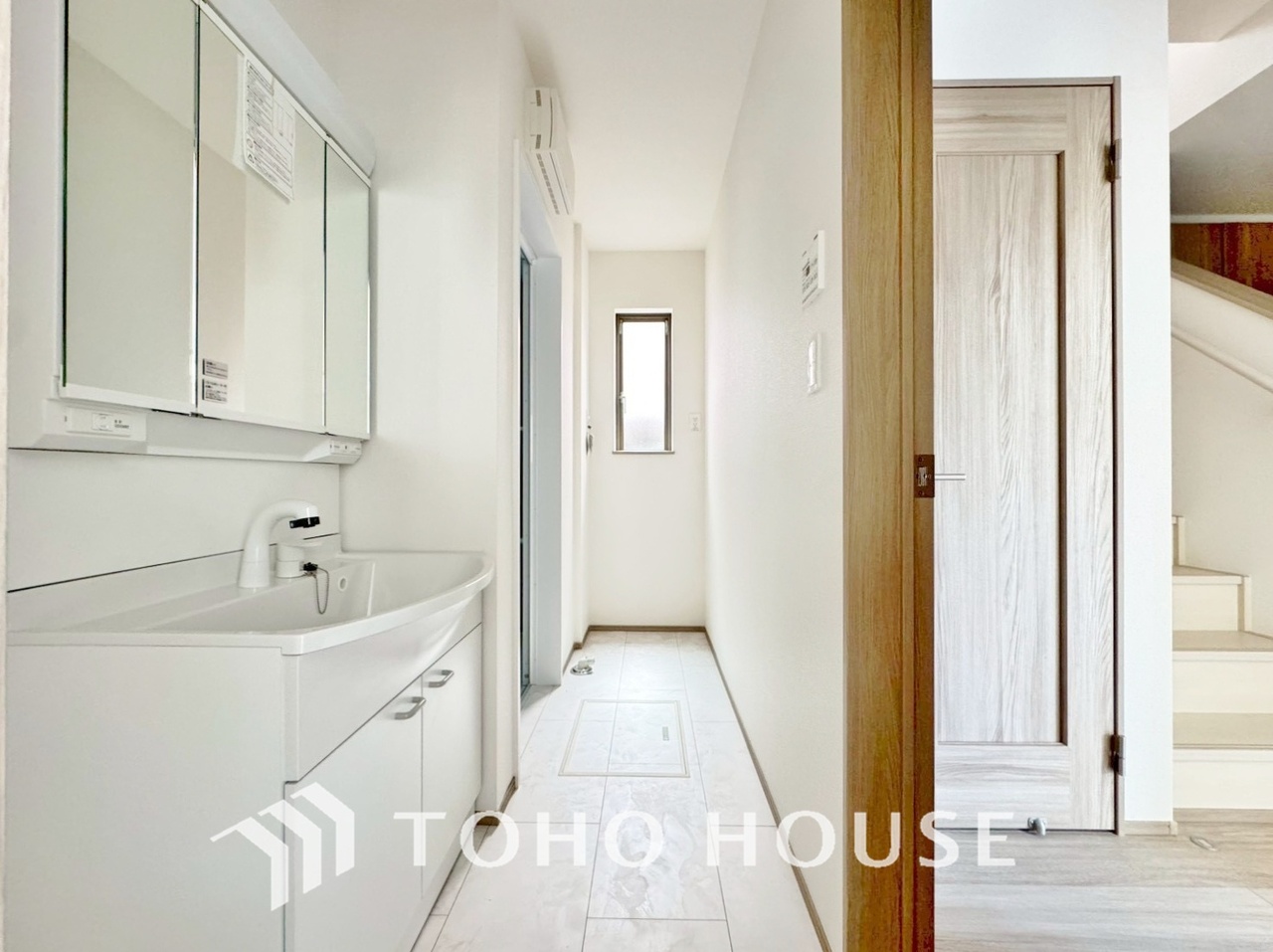 手で洗いたい大切な服など、広く使えると助かる洗面台は汚れの付きにくい形状と素材で造られております。