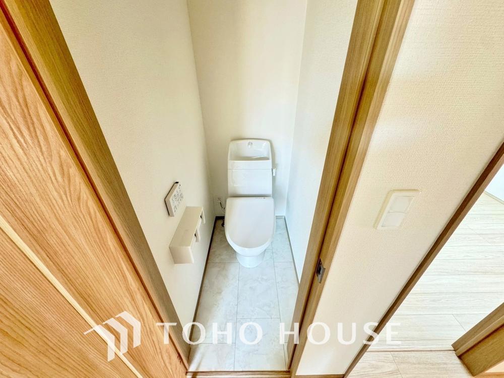 十分な広さと清潔感のあるカラーで纏まったおトイレ。時間に余裕とゆとりを持たせます。