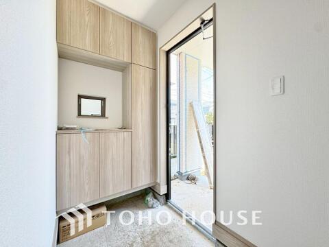 広々とした玄関スペースは何かと重宝します。ベビーカーも楽々置けるゆったりスペースが魅力です。