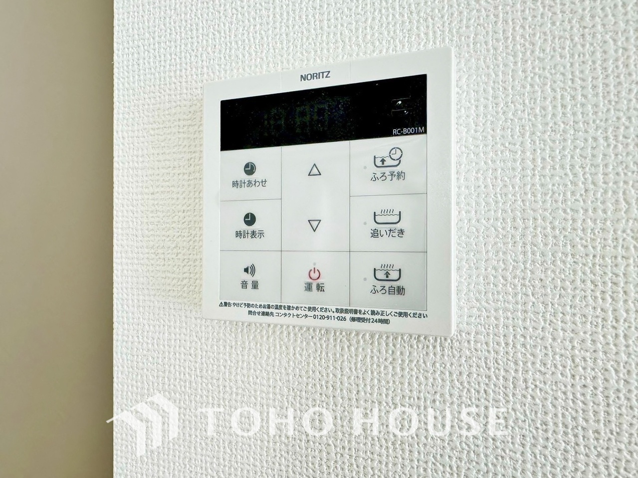 スイッチ1つで湯を浴槽に張ったり、保温や追い焚きをすることができるシステムが付いたオートバス。