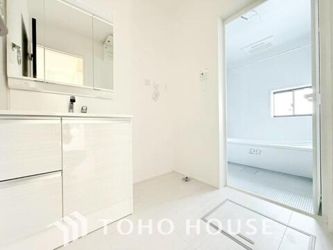 お家の中でも特にプライベートスペースとなる洗面所は、洗濯場所と浴室を同じ空間でまとめております。