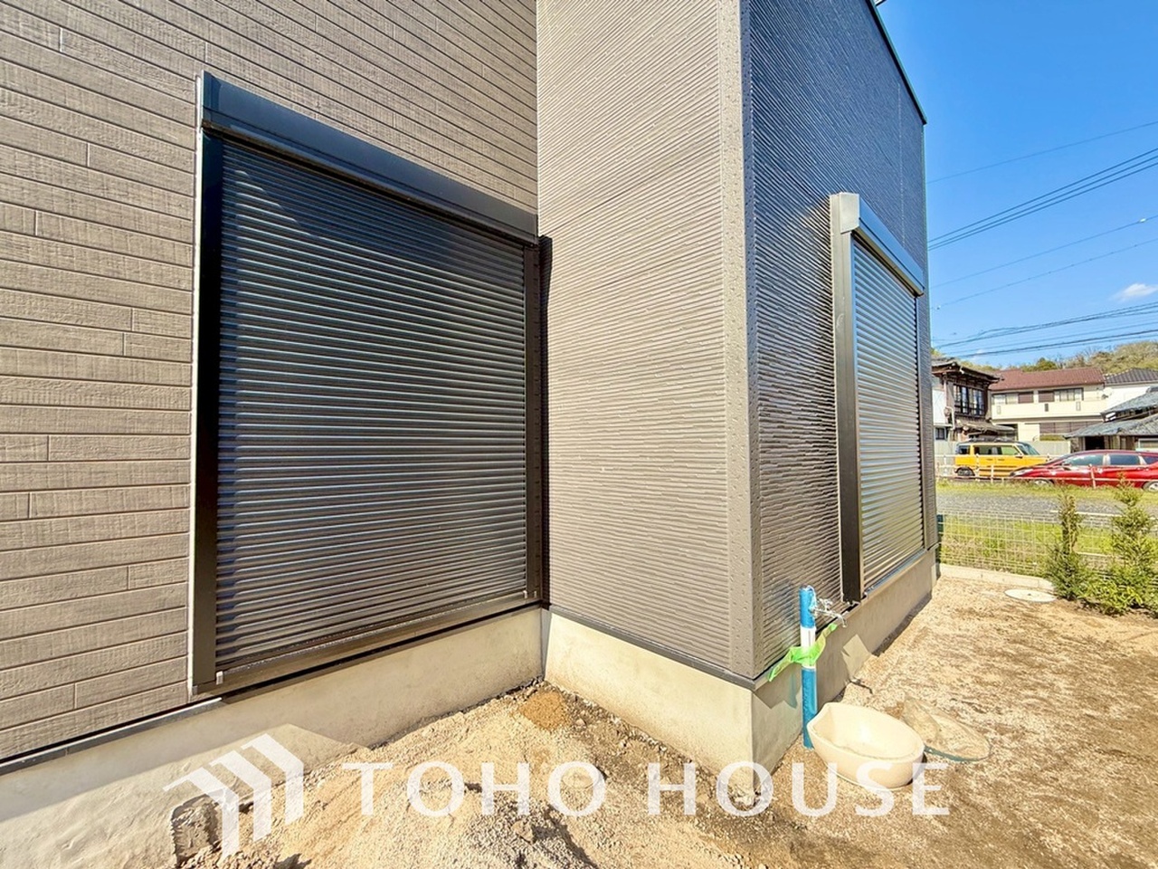 戸建にも防犯機能のシャッターを完備しております。寒い冬でも中から開閉がラクラクな所も便利です。