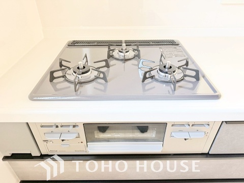 3口コンロは一度に複数のお料理を作ることができるメリットがあります。毎日のキッチンタイムを効率よく。