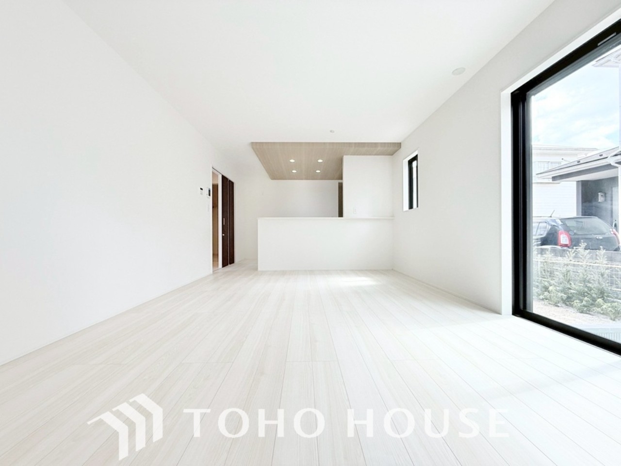 お子様がお庭で遊ぶのを見守りつつ、キッチンでお料理やリビングでくつろぐことができる安心な間取り。