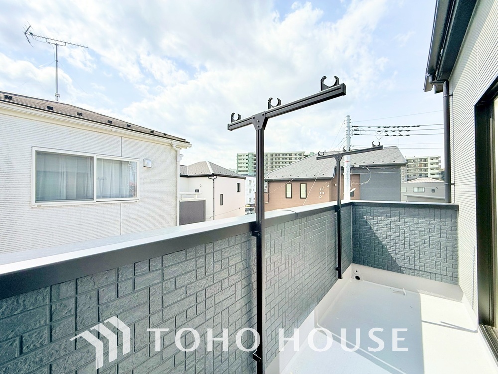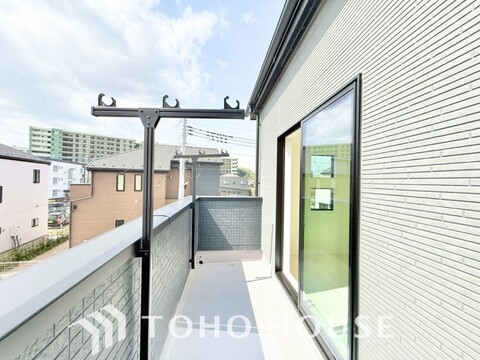 暖かい陽ざしが差込むバルコニーは、晴れた日には、洗濯物が良く乾きます。また、風通しも良好です。