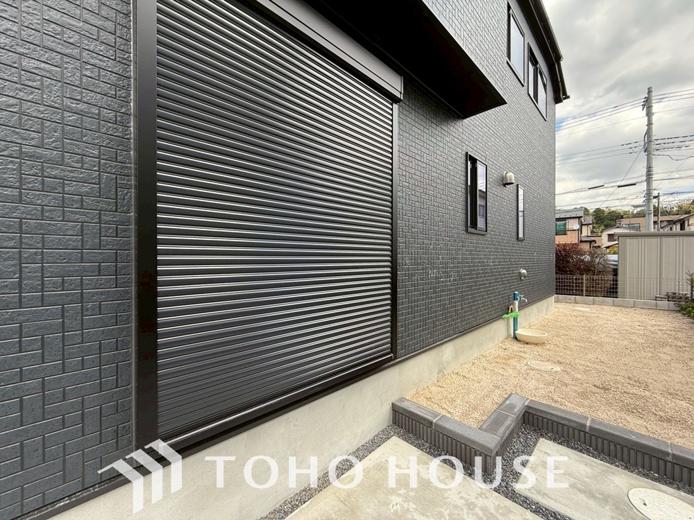 戸建にも防犯機能のシャッターを完備しております。寒い冬でも中から開閉がラクラクな所も便利です。