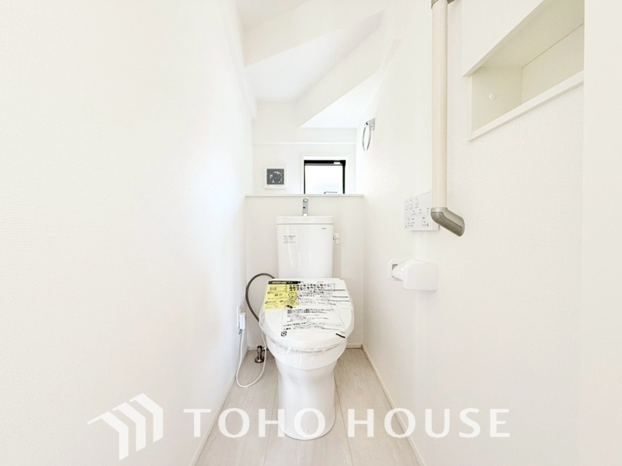 十分な広さと清潔感のあるカラーで纏まったおトイレ。時間に余裕とゆとりを持たせます。