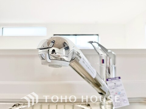 浄水器ボタンひとつで浄水と原水に切り替えられる浄水器一体型水洗を使用。