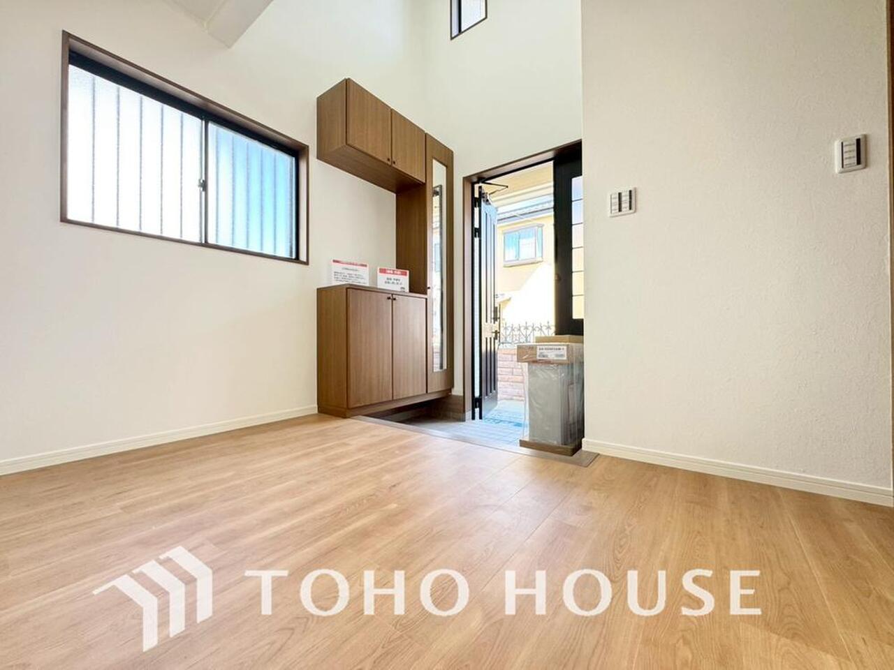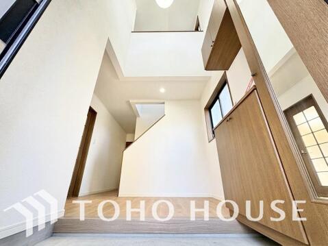 吹き抜けを採用した玄関は開放感のある空間となっています。明るい玄関は、毎日がワクワクしそうです。