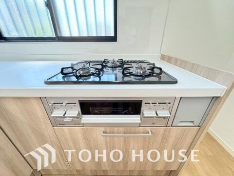 3口コンロは一度に複数のお料理を作ることができるメリットがあります。毎日のキッチンタイムを効率よく。