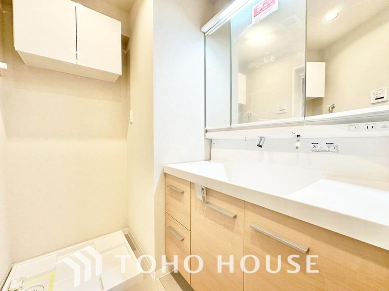 お家の中でも特にプライベートスペースとなる洗面所は、洗濯場所と浴室を同じ空間でまとめております。