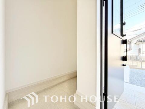 人を迎え入れる最初の場所だからこそ、清潔感が大事。ゆとりあるシューズインクロークも設置しました。