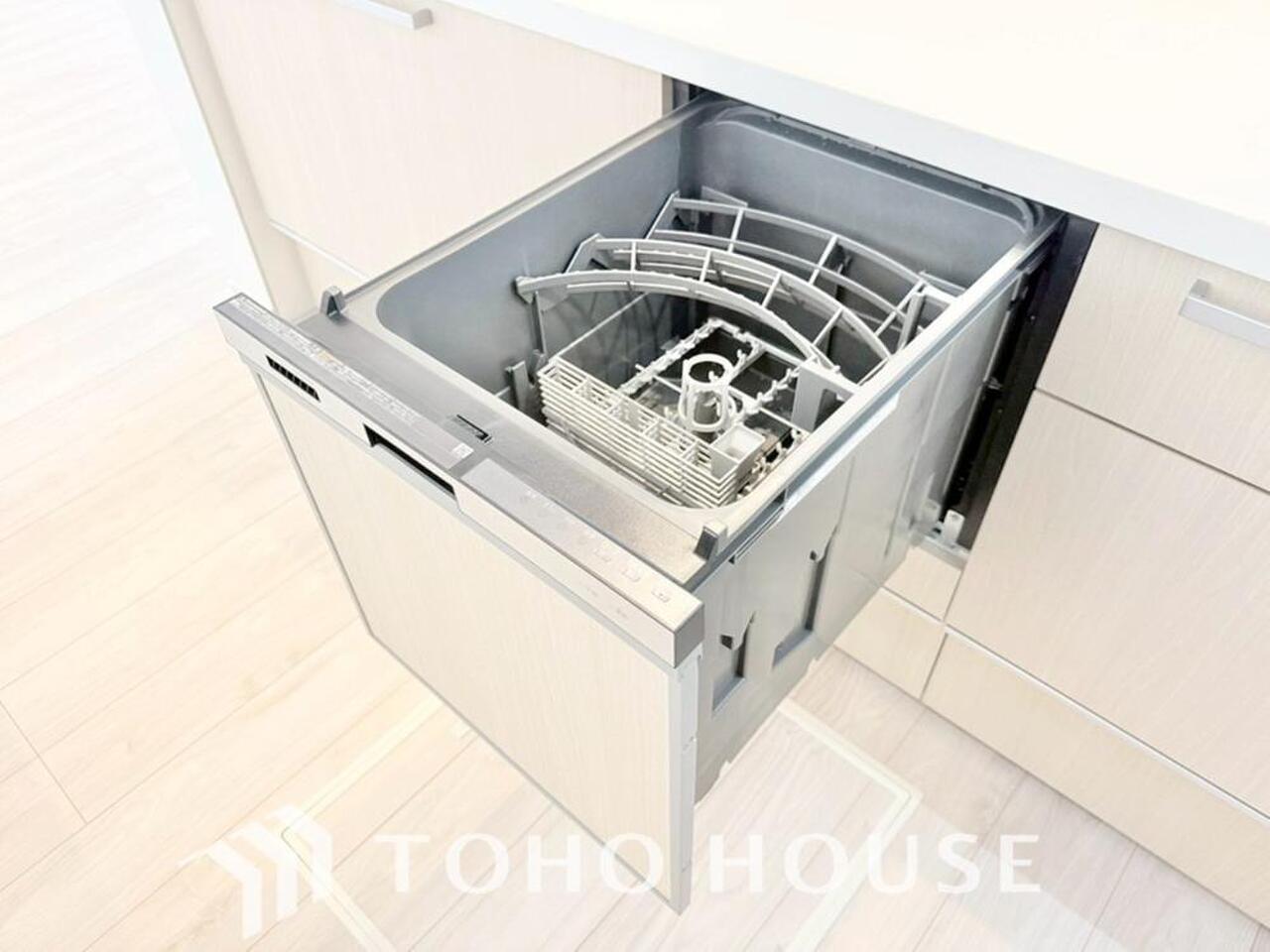 「ビルトインタイプ食器洗乾燥機」通常の手洗いでは使用出来ないほど高温のお湯や高圧水流を使うことにより汚れを効果的に落とすことができる。