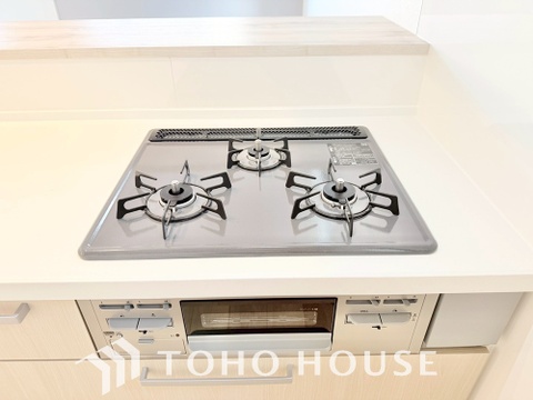 3口コンロは一度に複数のお料理を作ることができるメリットがあります。毎日のキッチンタイムを効率よく。