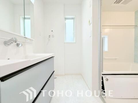 手で洗いたい大切な服など、広く使えると助かる洗面台は汚れの付きにくい形状と素材で造られております。