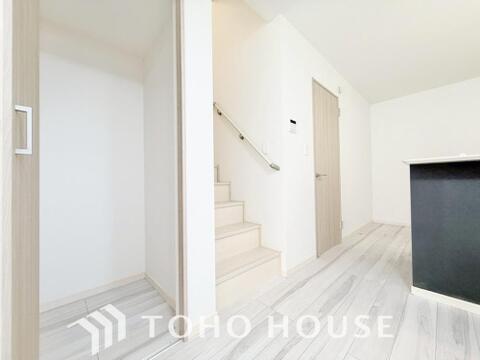 玄関そばの廊下収納。日用品のストックや防災グッズを置いたりと、何かと便利に使えます。