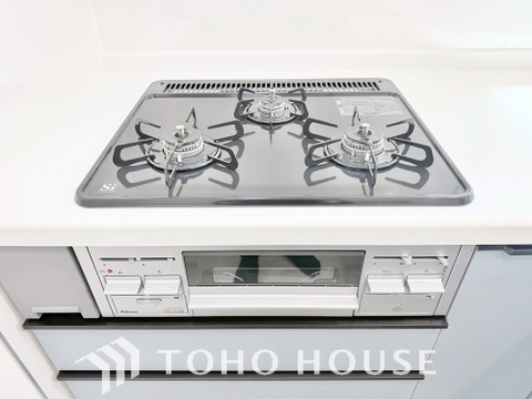 3口コンロは一度に複数のお料理を作ることができるメリットがあります。毎日のキッチンタイムを効率よく。