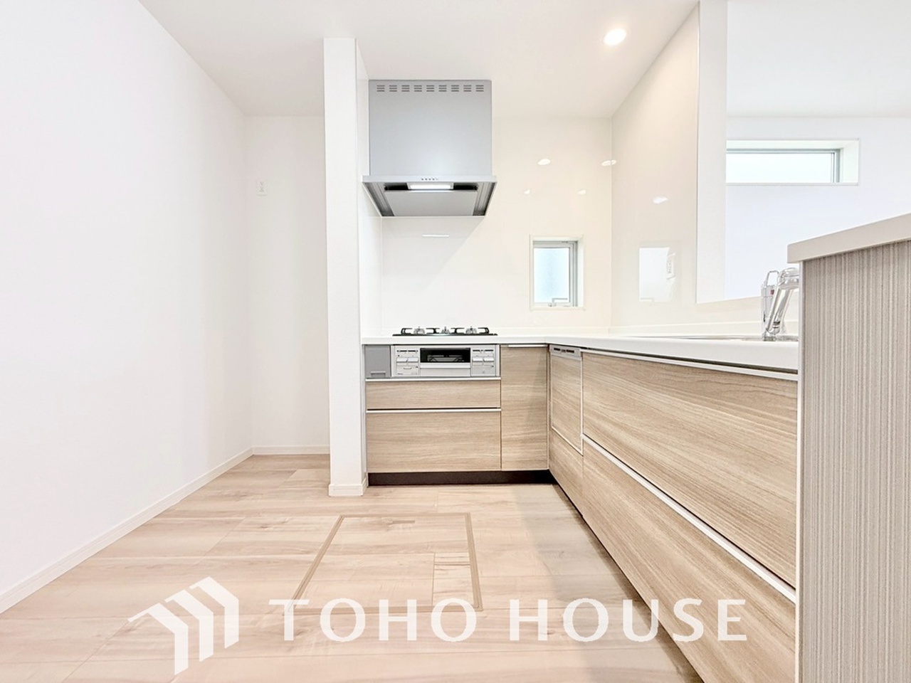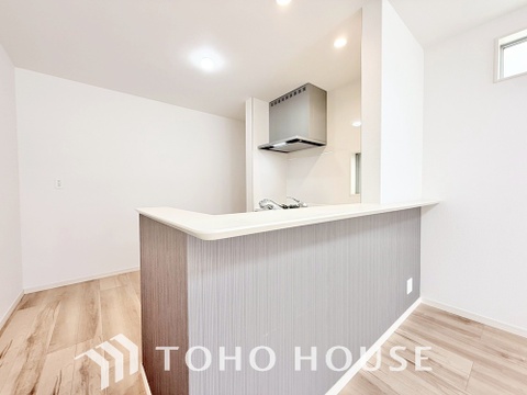 家族と会話を楽しみながらお料理ができる理想のキッチンスタイルです。