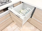 キッチンの収納は、デッドスペースになりやすい箇所を有効活用できる、スライド式収納を採用しました。