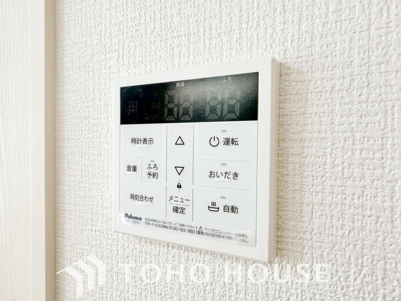 スイッチ1つで湯を浴槽に張ったり、保温や追い焚きをすることができるシステムが付いたオートバス。