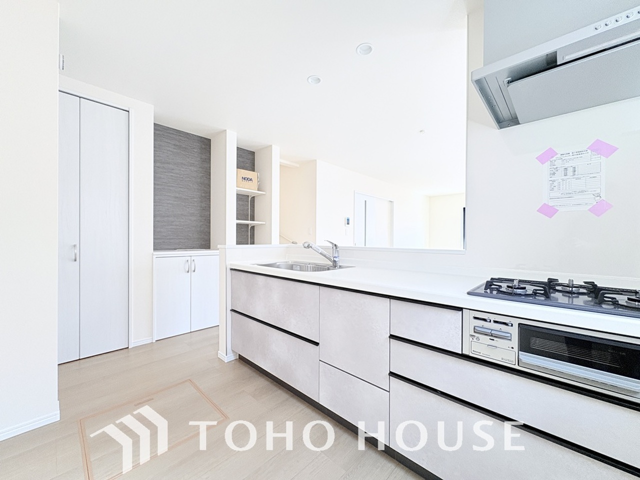 家族みんなでゆったりと調理や食事の準備ができる十分な広さを確保した、快適なキッチンスペース。
