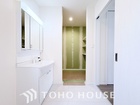 身だしなみのチェックがしやすい大きな鏡、下には収納がたっぷり。スッキリとした空間を演出いたします。
