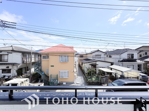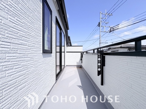 青空を感じられるバルコニーには爽やかな風が吹き抜け、周辺には戸建住宅街の景色が広がります。